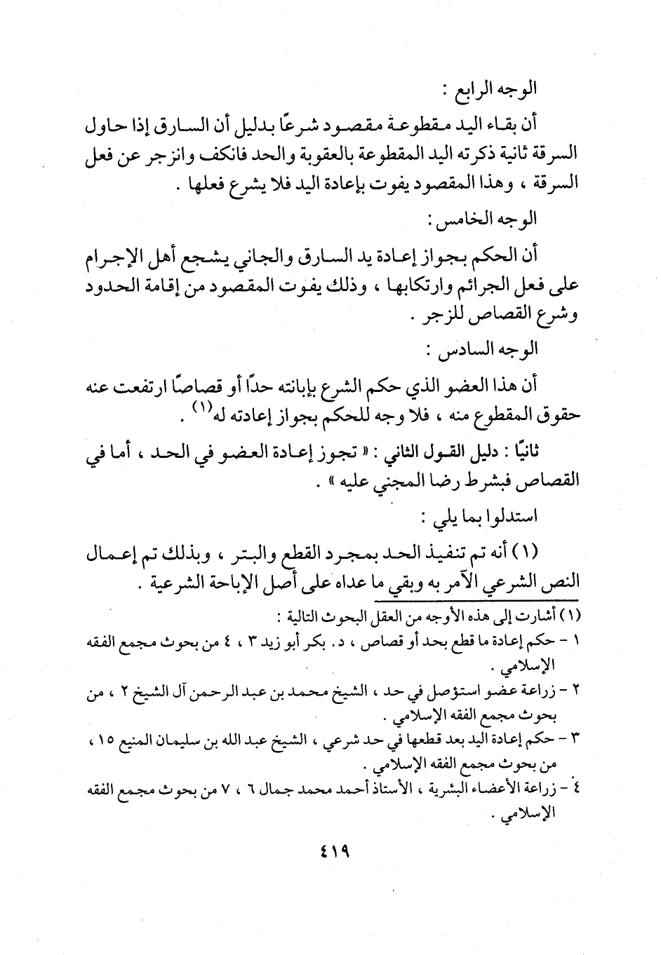 3 - حكم إعادة اليد بعد قطعها في حد شرعي، الشيخ عبد الله بن سليمان المنيع 15، من بحوث مجمع الفقه الإسلامي.