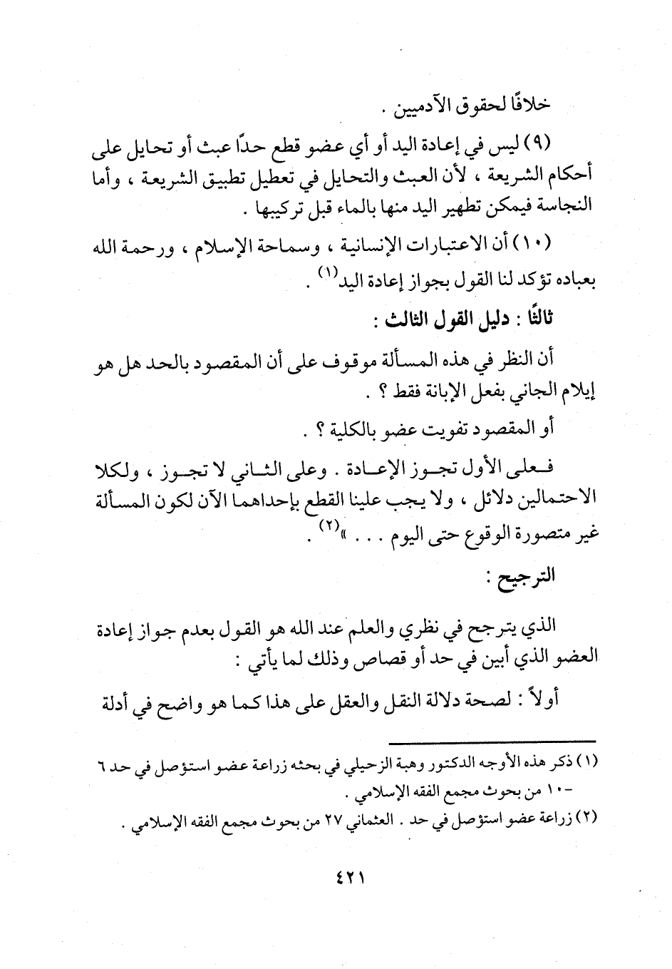 (¬1) ذكر هذه الأوجه الدكتور وهبة الزحيلي في بحثه زراعة عضو استؤصل في حد 6 - 10 من بحوث مجمع الفقه الإسلامي.