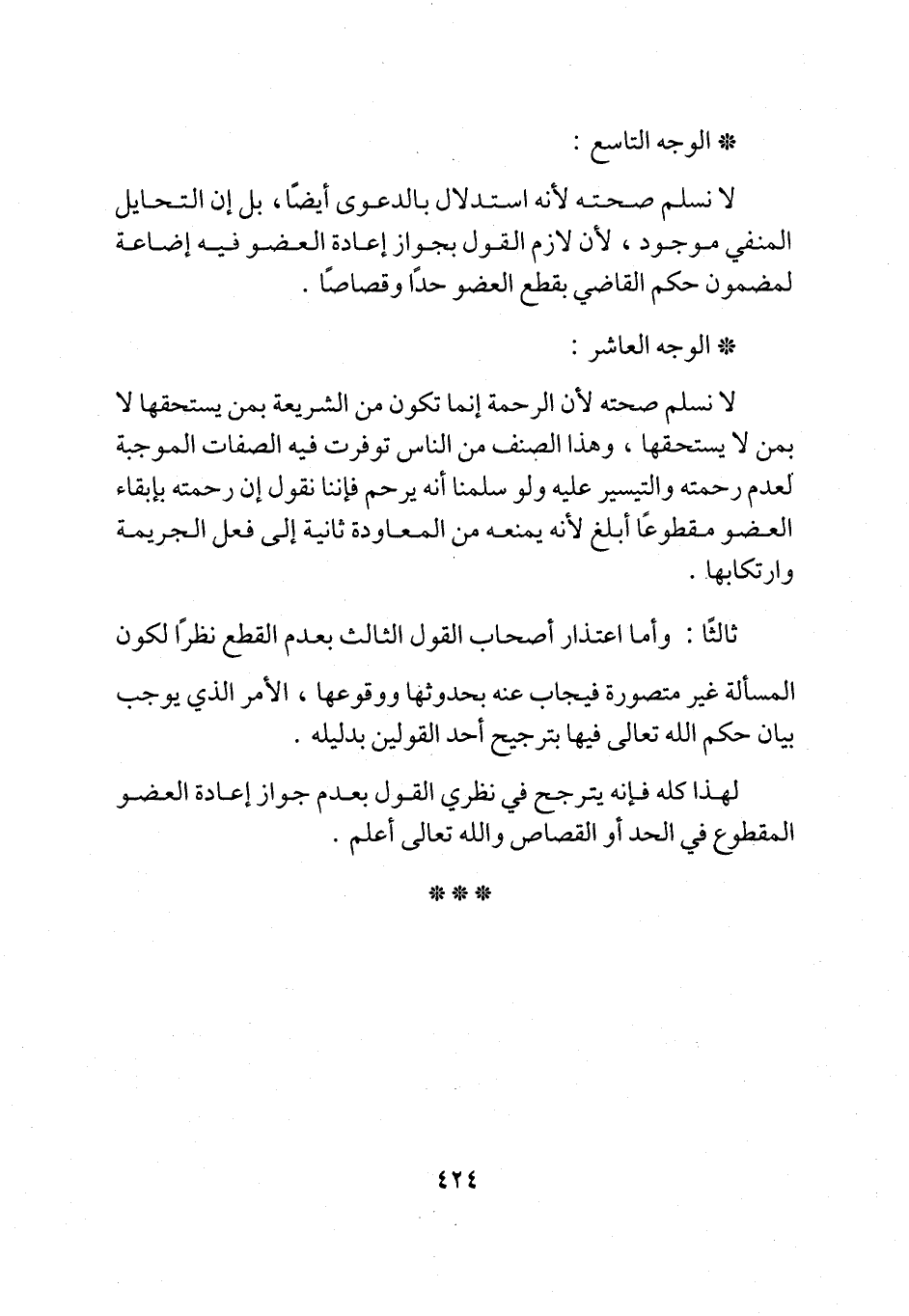 لهذا كله فإنه يترجح في نظري القول بعدم جواز إعادة العضو المقطوع في الحد أو القصاص والله تعالى أعلم.