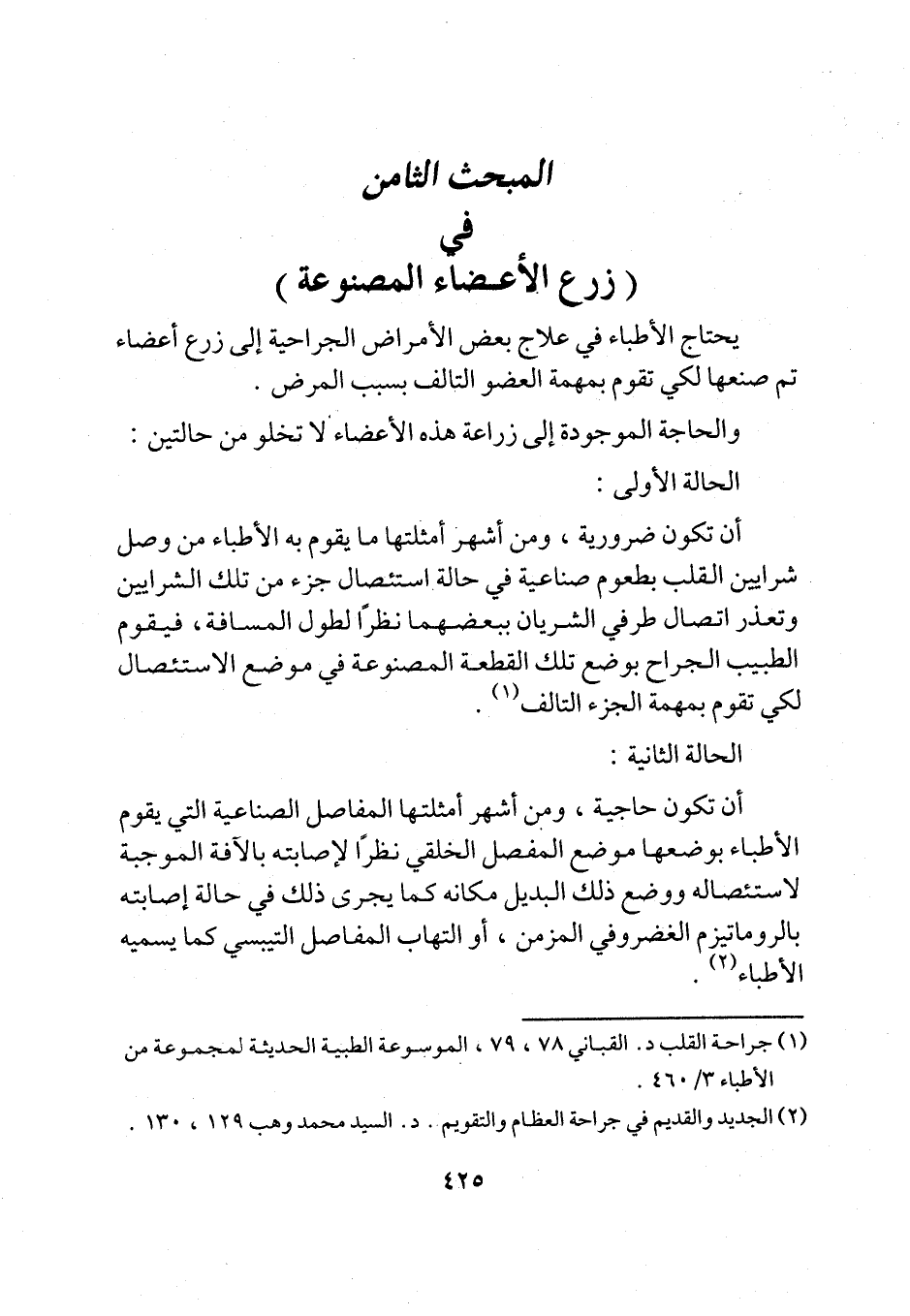 المبحث الثامن في (زرع الأعضاء المصنوعة)