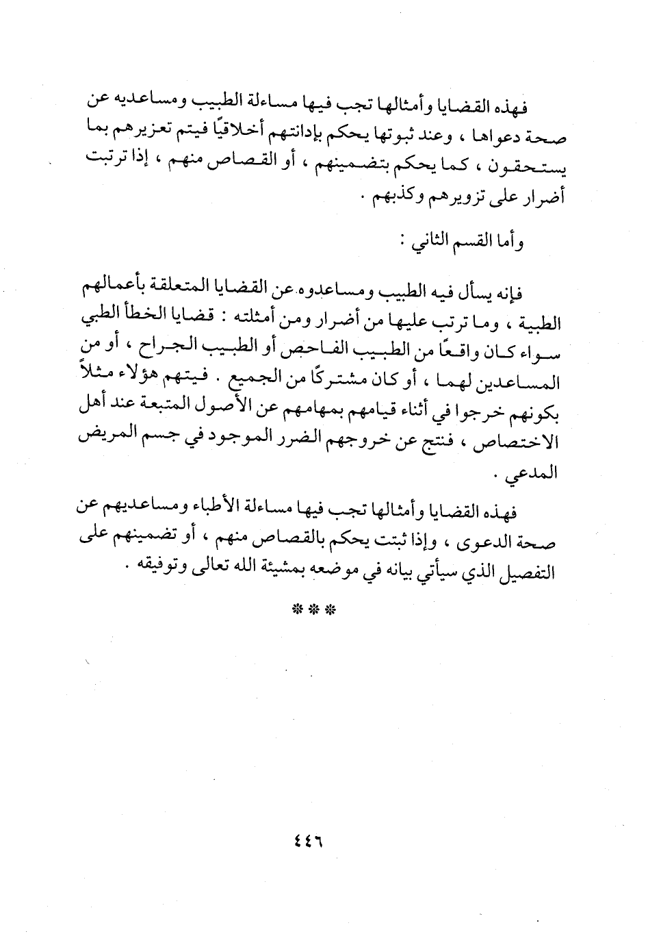فهذه القضايا وأمثالها تجب فيها مساءلة الأطباء ومساعديهم عن صحة الدعوى، وإذا ثبتت يحكم بالقصاص منهم، أو تضمينهم على التفصيل الذي سيأتي بيانه في موضعه بمشيئة الله تعالى وتوفيقه.