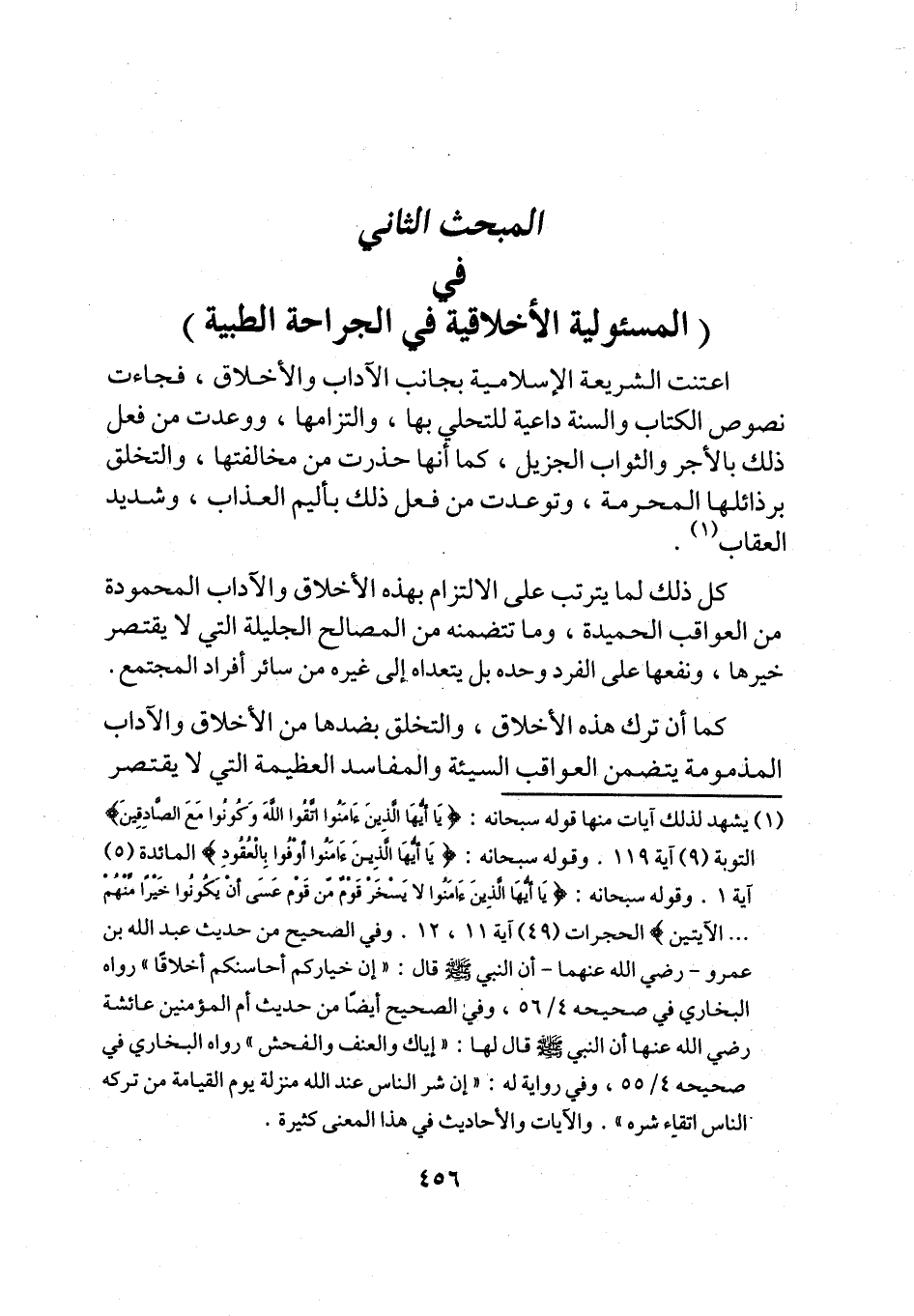 المبحث الثاني في (المسئولية الأخلاقية في الجراحة الطبية)