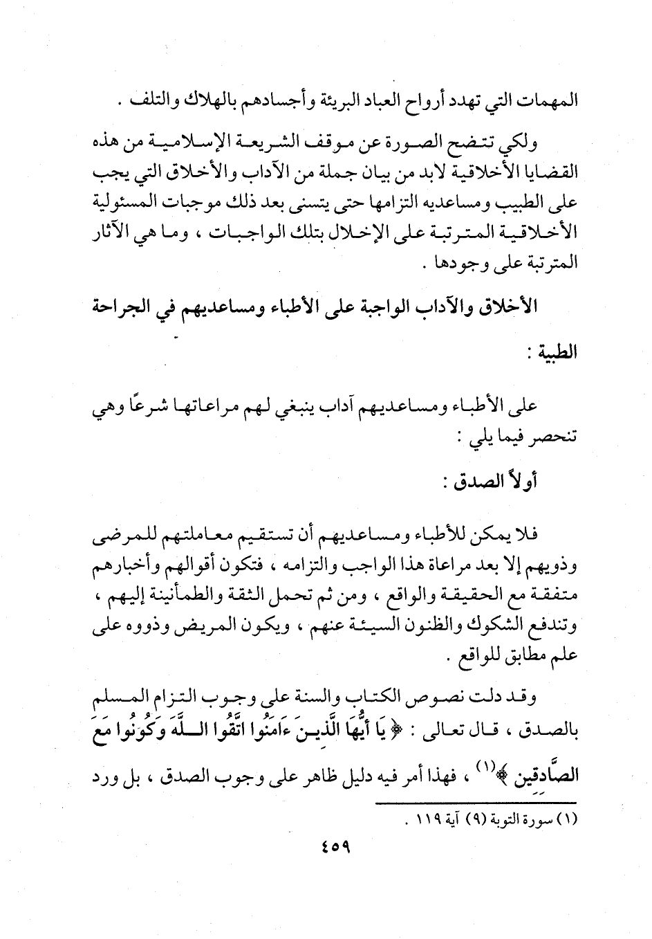 الأخلاق والآداب الواجبة على الأطباء ومساعديهم في الجراحة الطبية: