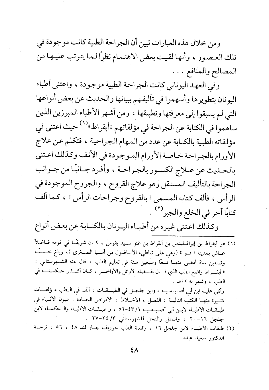 (¬2) طبقات الأطباء لابن جلجل 16، وقصة الطب جوزيف جارلند 48، 56، ترجمة الدكتور سعيد عبده.