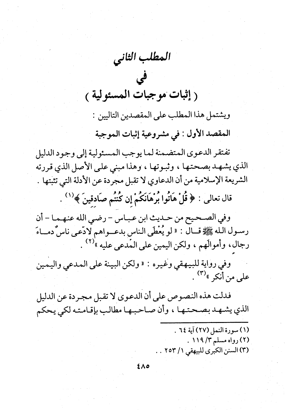 فدلت هذه النصوص على أن الدعوى لا تقبل مجردة عن الدليل الذي يشهد بصحتها، وأن صاحبها مطالب بإقامته لكي يحكم