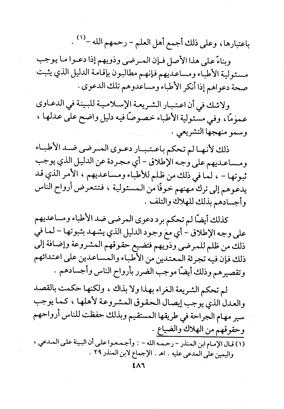 ولاشك في أن اعتبار الشريعة الإسلامية للبينة في الدعاوى عمومًا، وفي مسئولية الأطباء خصوصًا فيه دليل واضح على عدلها، وسمو منهجها التشريعي.