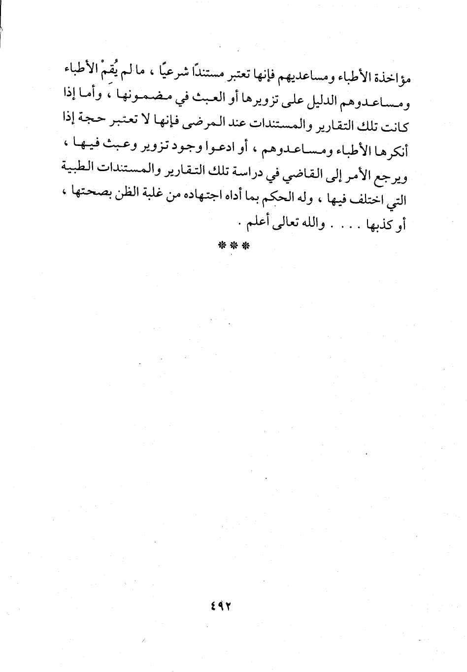 مؤاخذة الأطباء ومساعديهم فإنها تعتبر مستندًا شرعيًا، ما لم يُقِمْ الأطباء ومساعدوهم الدليل على تزويرها أو العبث في مضمونها، وأما إذا كانت تلك التقارير والمستندات عند المرضى فإنها لا تعتبر حجة إذا أنكرها الأطباء ومساعدوهم، أو ادعوا وجود تزوير وعبث فيها، ويرجع الأمر إلى القاضي في دراسة تلك التقارير والمستندات الطبية التي اختلف فيها، وله الحكم بما أداه اجتهاده من غلبة الظن بصحتها، أو كذبها .... والله تعالى أعلم.