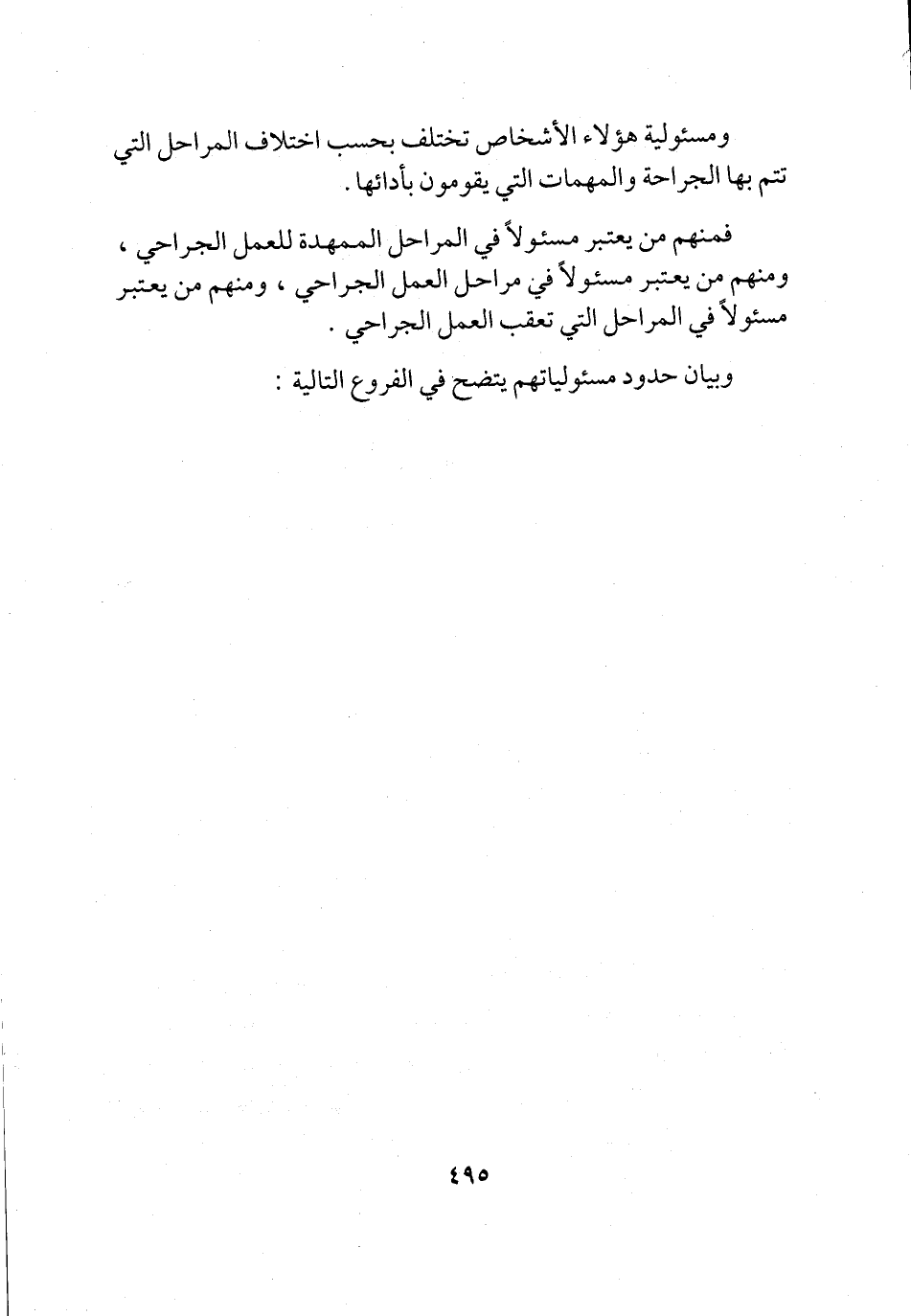فمنهم من يعتبر مسئولاً في المراحل الممهدة للعمل الجراحي، ومنهم من يعتبر مسئولاً في مراحل العمل الجراحي، ومنهم من يعتبر مسئولاً في المراحل التي تعقب العمل الجراحي.