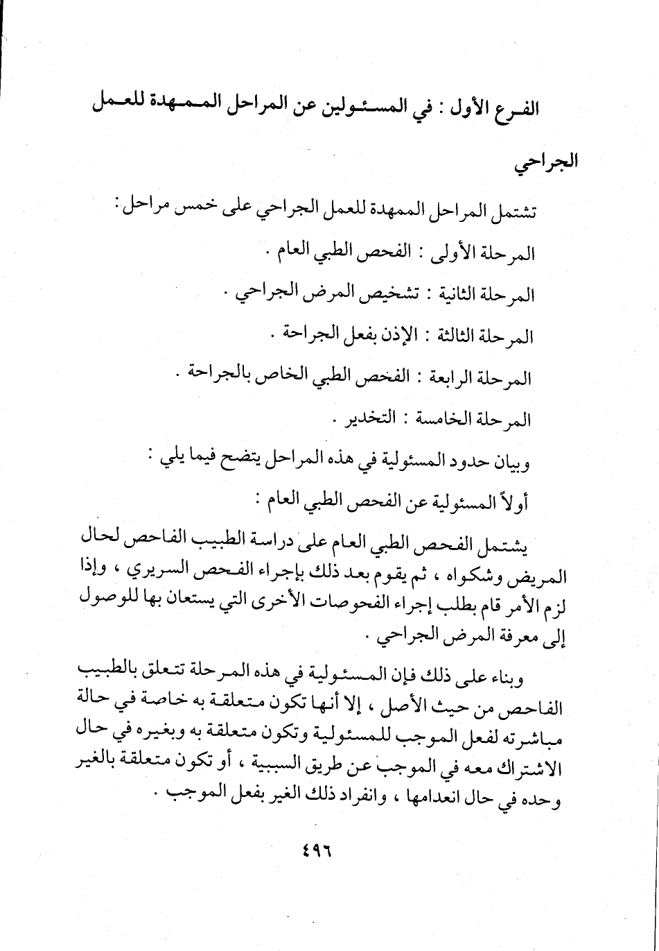 الفرع الأول: في المسئولين عن المراحل الممهدة للعمل الجراحي