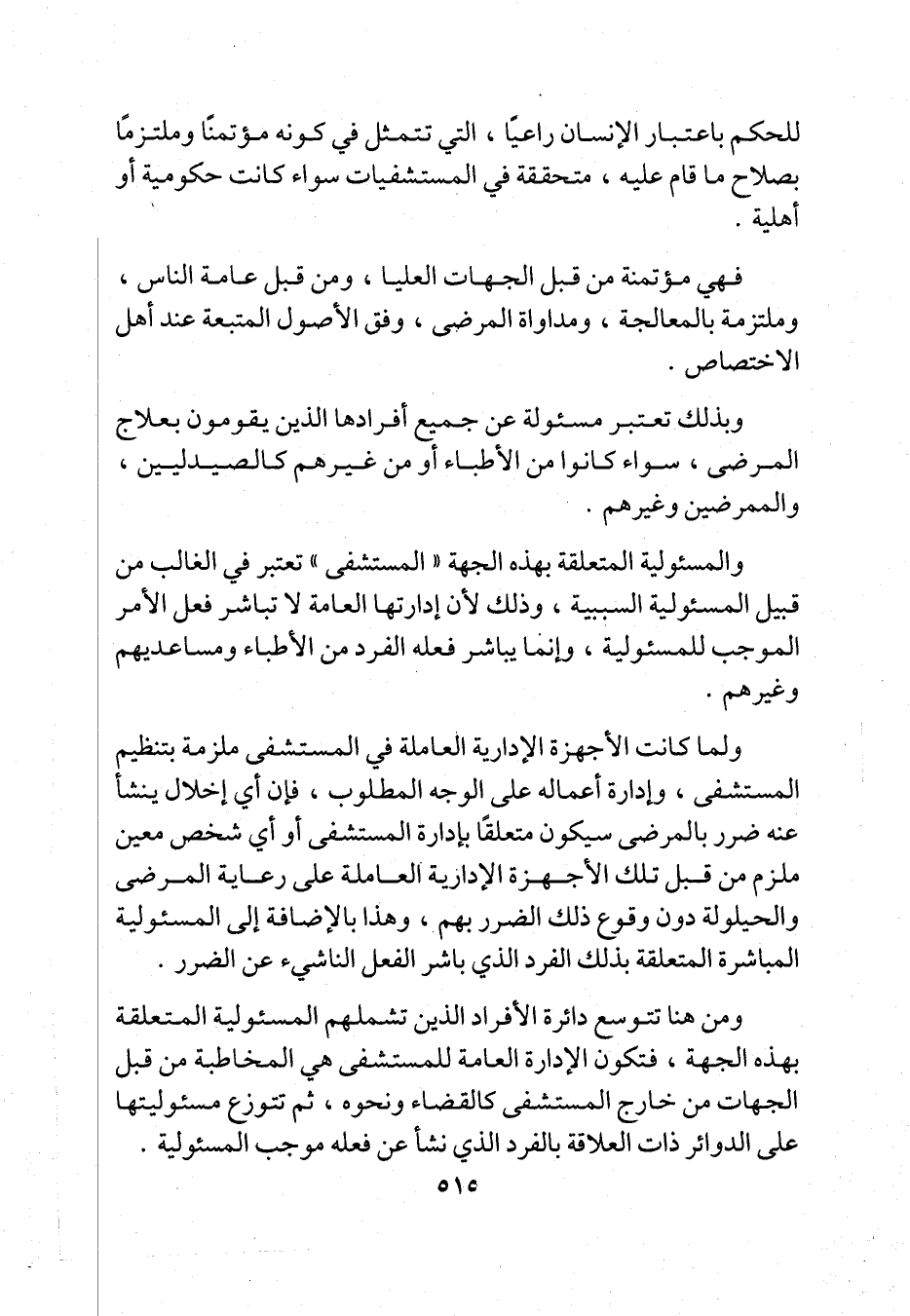 للحكم باعتبار الإنسان راعيًا، التي تتمثل في كونه مؤتمنًا وملتزمًا بصلاح ما قام عليه، متحققة في المستشفيات سواء كانت حكومية أو أهلية.