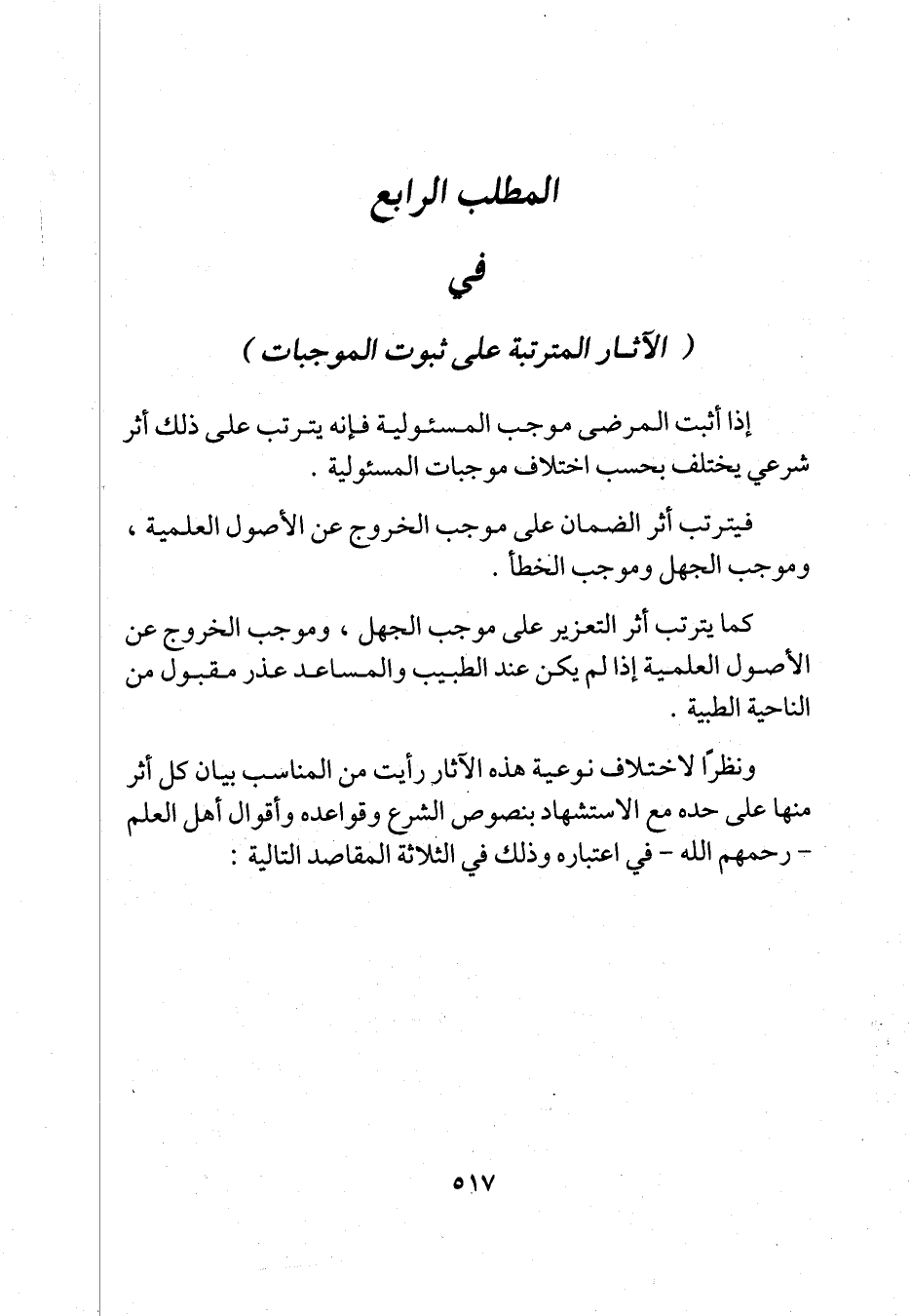 المطلب الرابع في (الآثار المترتبة على ثبوت الموجبات)