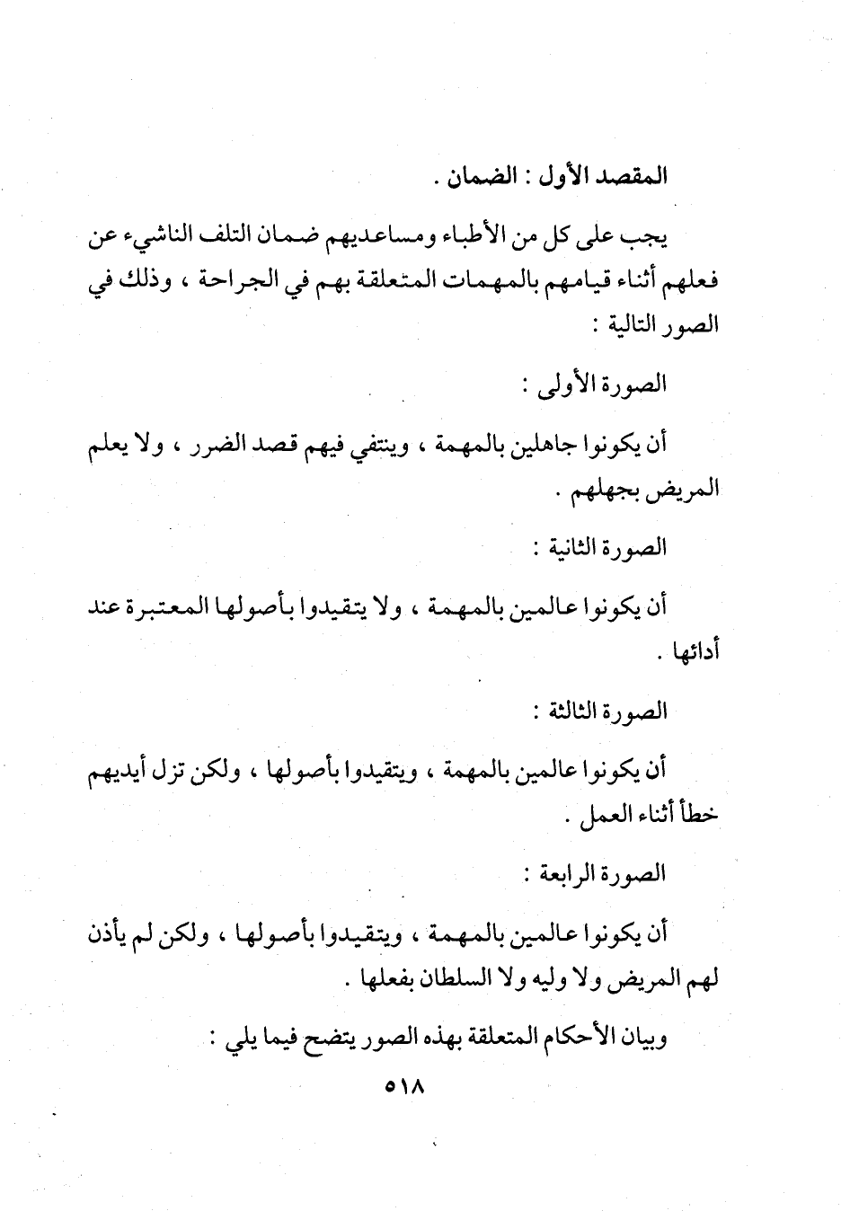 يجب على كل من الأطباء ومساعديهم ضمان التلف الناشيء عن فعلهم أثناء قيامهم بالمهمات المتعلقة بهم في الجراحة، وذلك في الصور التالية: