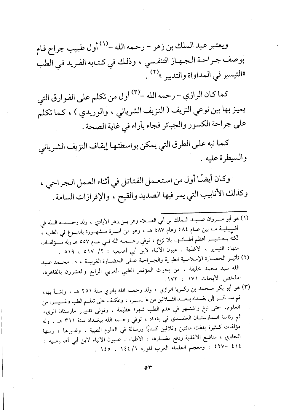 (¬2) تأثير الحضارة الإسلامية الطبية والجراحية على الحضارة الغربية، د. محمد عبد الله سيد محمد خليفة، من بحوث المؤتمر الطبي العربي الرابع والعشرون بالقاهرة، ملخص الأبحاث 171، 172.