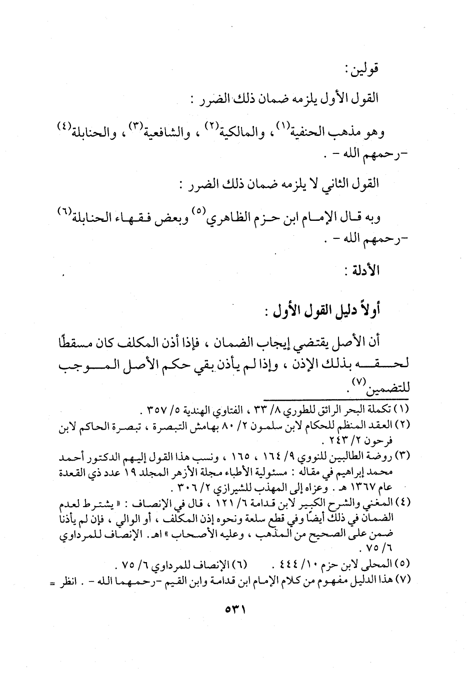 (¬3) روضة الطالبين للنووي 9/ 164، 165، ونسب هذا القول إليهم الدكتور أحمد محمد إبراهيم في مقاله: مسئولية الأطباء مجلة الأزهر المجلد 19 عدد ذي القعدة ْعام 1367 هـ. وعزاه إلى المهذب للشيرازي 2/ 306.