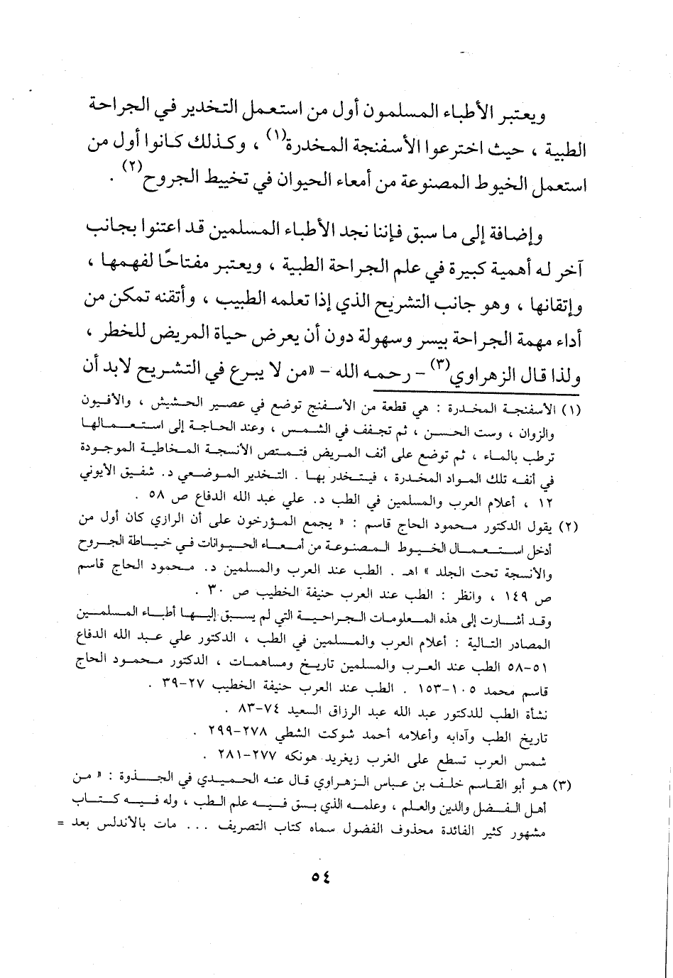 وقد أشارت إلى هذه المعلومات الجراحية التي لم يسبق إليها أطباء المسلمين المصادر التالية: أعلام العرب والمسلمين في الطب، الدكتور علي عبد الله الدفاع 51 - 58 الطب عند العرب والمسلمين تاريخ ومساهمات، الدكتور محمود الحاج قاسم محمد 105 - 153. الطب عند العرب حنيفة الخطيب 27 - 39.
