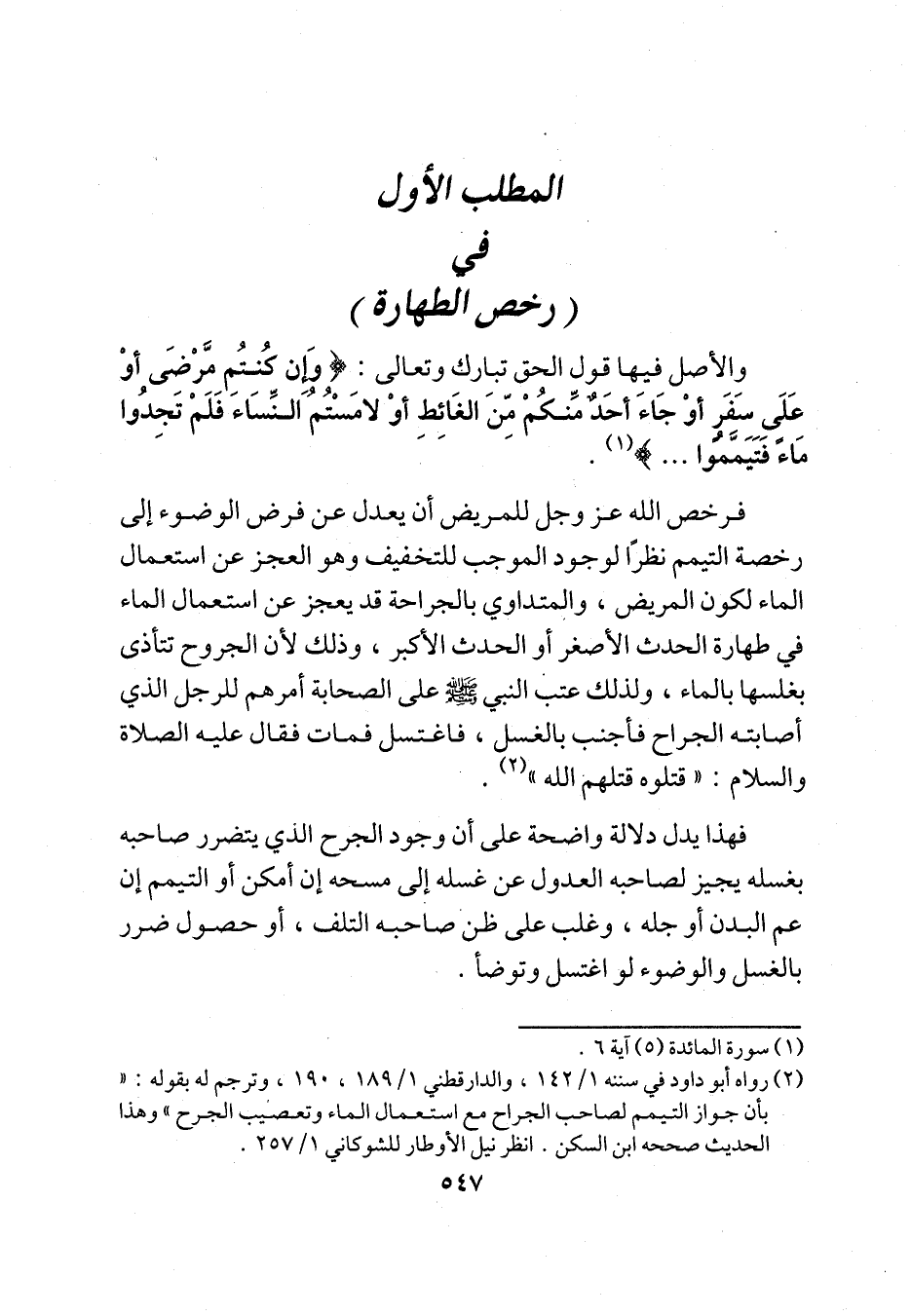 المطلب الأول في (رخص الطهارة)