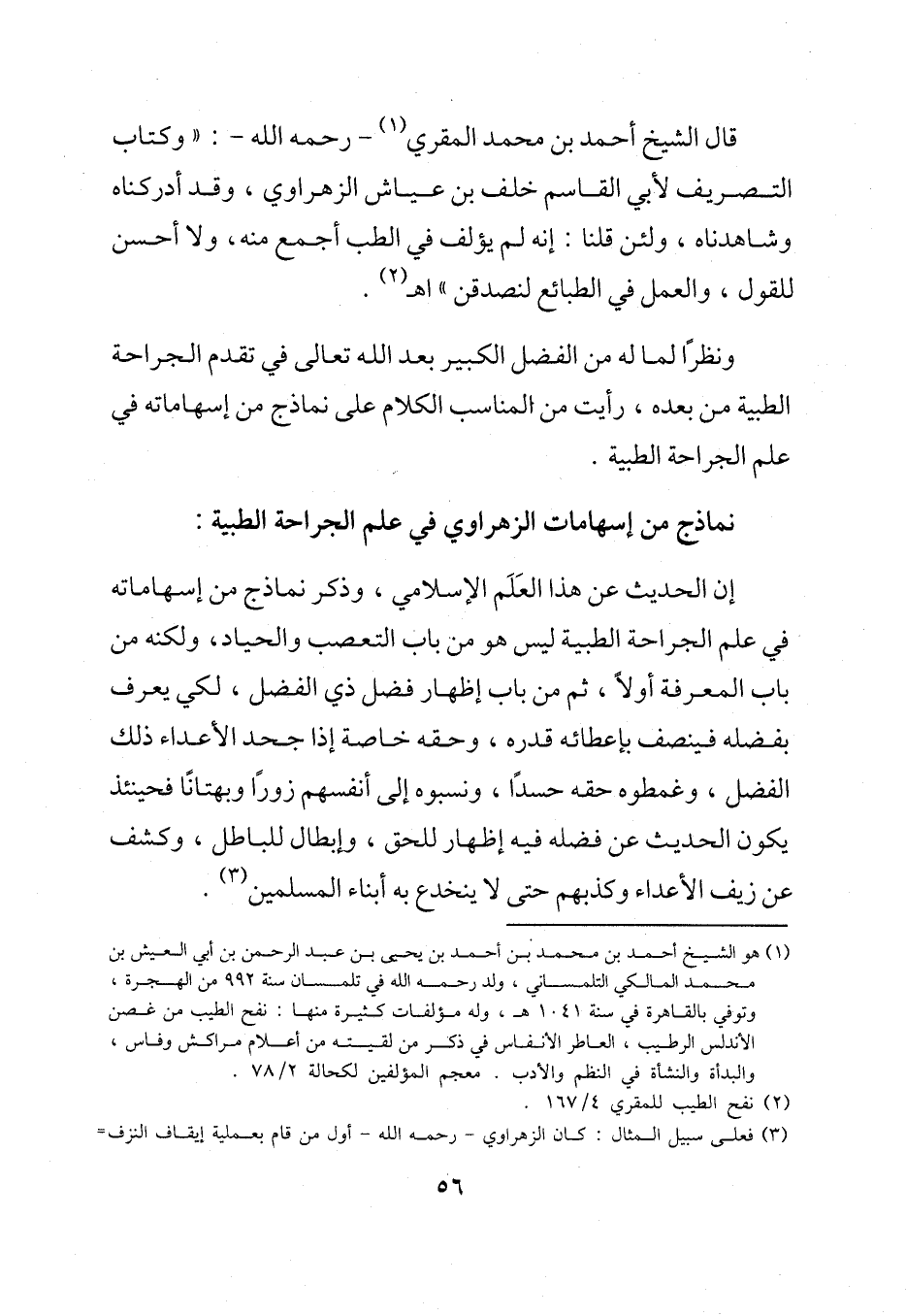 إن الحديث عن هذا العَلَم الإسلامي، وذكر نماذج من إسهاماته في علم الجراحة الطبية ليس هو من باب التعصب والحياد، ولكنه من باب المعرفة أولاً، ثم من باب إظهار فضل ذي الفضل، لكي يعرف بفضله فينصف بإعطائه قدره، وحقه خاصة إذا جحد الأعداء ذلك الفضل، وغمطوه حقه حسدًا، ونسبوه إلى أنفسهم زورًا وبهتانًا فحينئذ يكون الحديث عن فضله فيه إظهار للحق، وإبطال للباطل، وكشف عن زيف الأعداء وكذبهم حتى لا ينخدع به أبناء المسلمين (¬3).