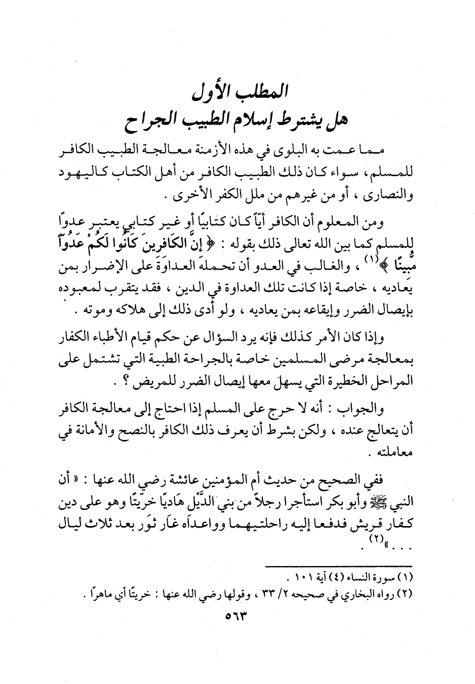 المطلب الأول هل يشترط إسلام الطبيب الجراح
