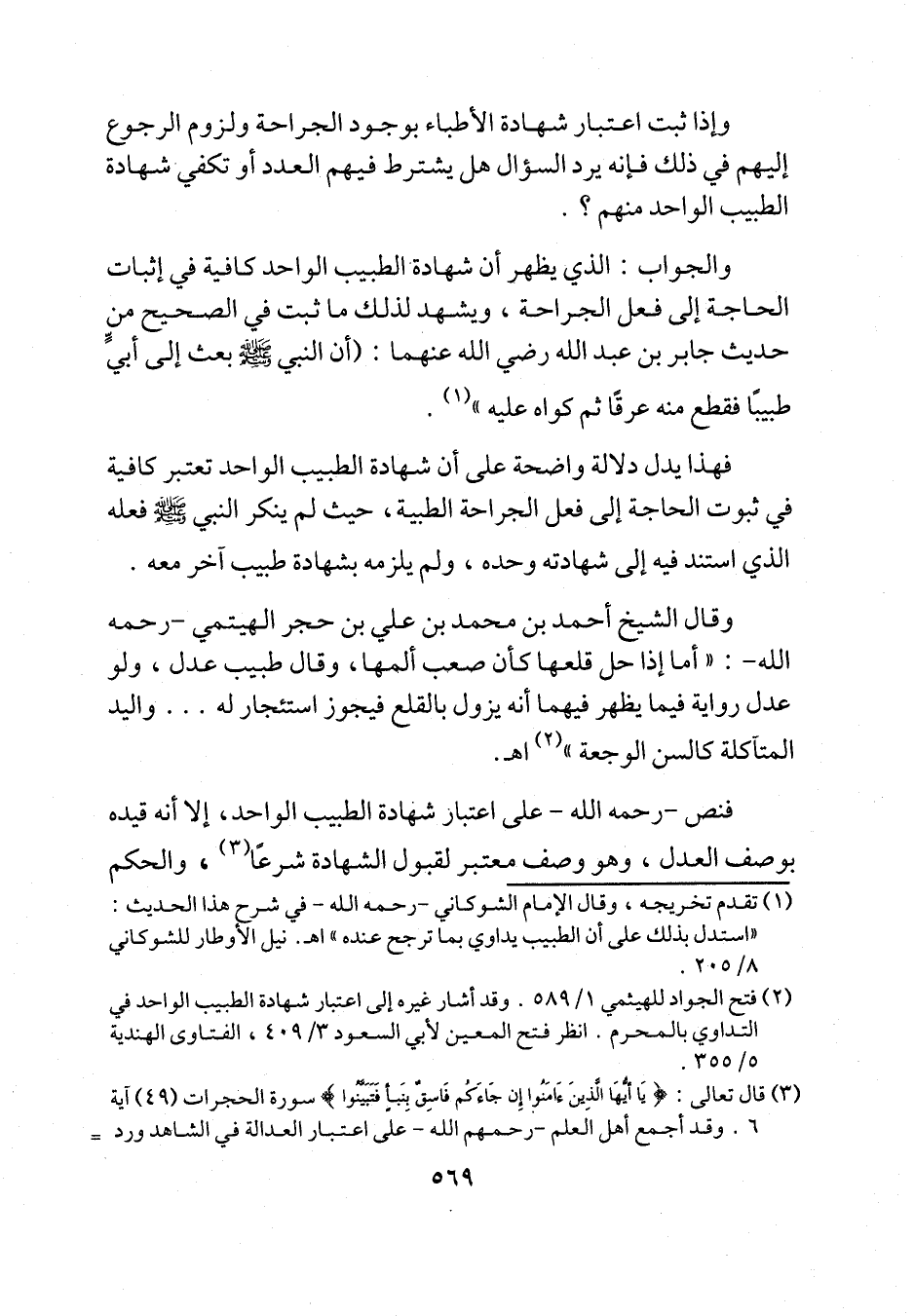 (¬2) فتح الجواد للهيثمي 1/ 589. وقد أشار غيره إلى اعتبار شهادة الطبيب الواحد في التداوي بالمحرم. انظر فتح المعين لأبي السعود 3/ 409، الفتاوى الهندية 5/ 355.
