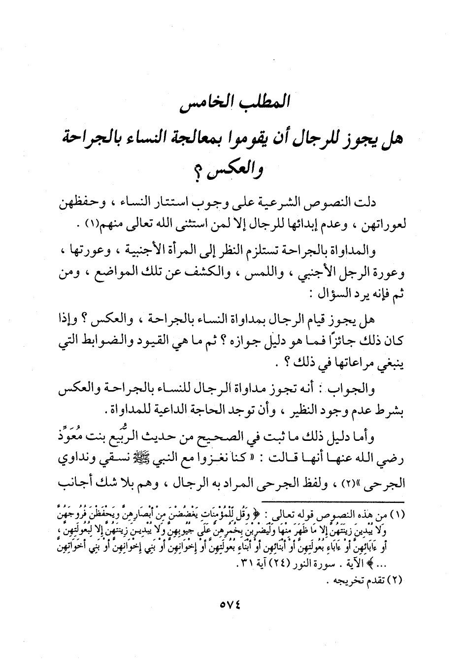 المطلب الخامس هل يجوز للرجال أن يقوموا بمعالجة النساء بالجراحة والعكس؟