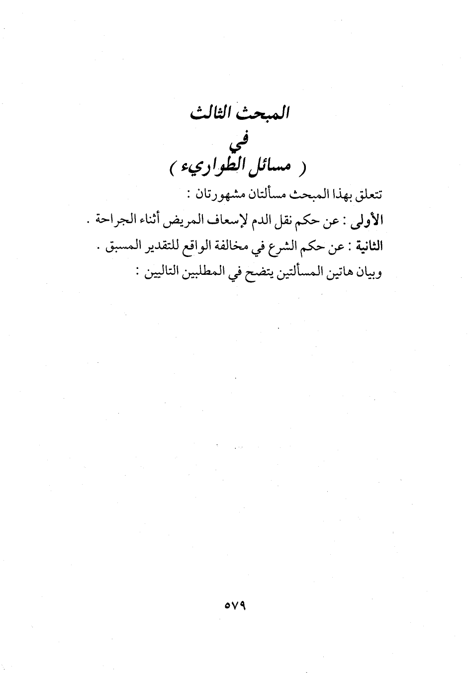 المبحث الثالث في (مسائل الطواريء)