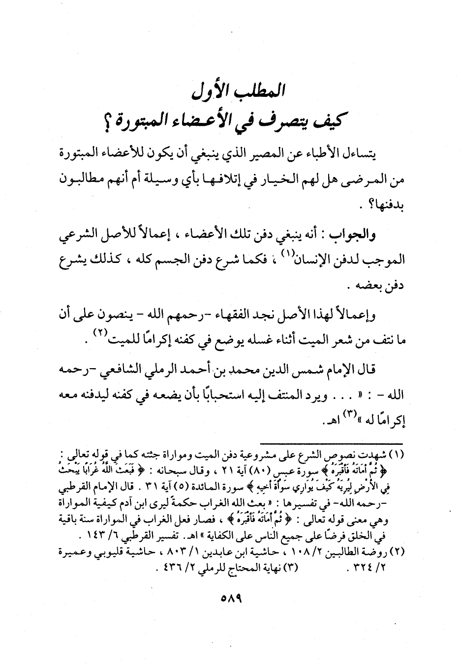المطلب الأول كيف يتصرف في الأعضاء المبتورة؟