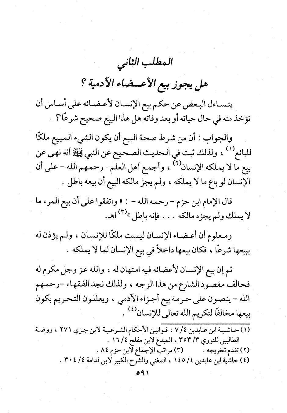 المطلب الثاني هل يجوز بيع الأعضاء الآدمية؟
