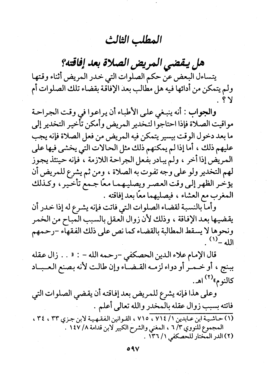 المطلب الثالث هل يقضي المريض الصلاة بعد إفاقته؟