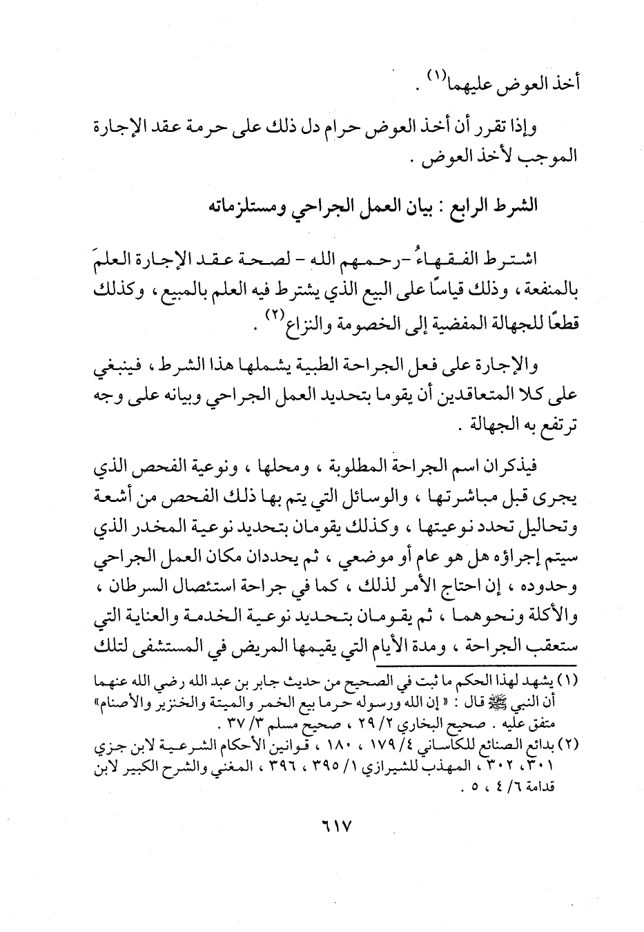 والإجارة على فعل الجراحة الطبية يشملها هذا الشرط، فينبغي على كلا المتعاقدين أن يقوما بتحديد العمل الجراحي وبيانه على وجه ترتفع به الجهالة.