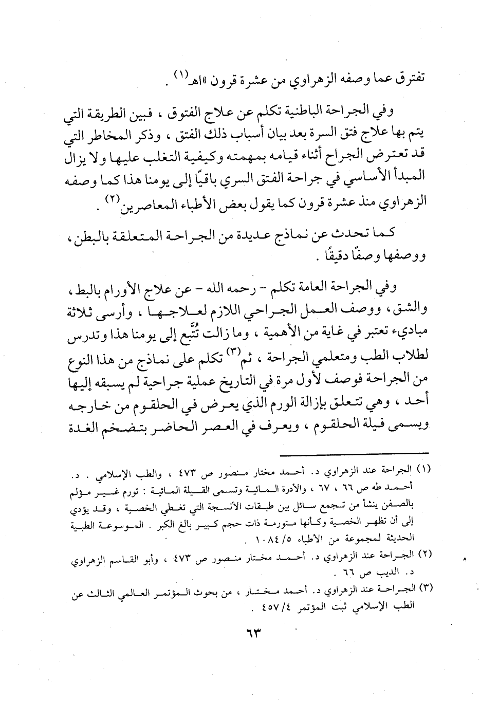 (¬2) الجراحة عند الزهراوي د. أحمد مختار منصور ص 473، وأبو القاسم الزهراوي د. الديب ص 66.