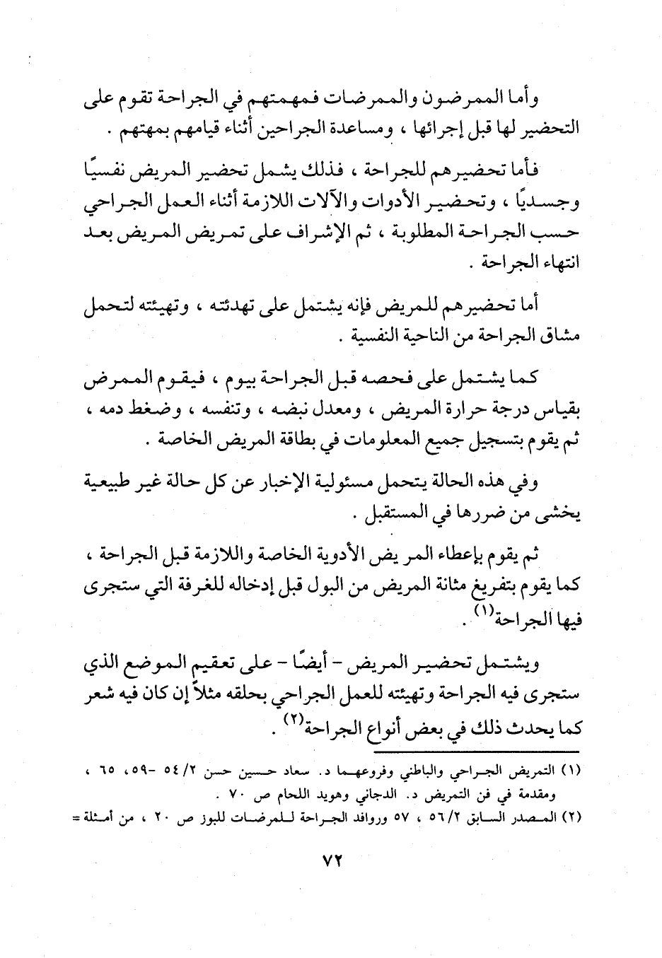 (¬1) التمريض الجراحي والباطنى وفروعهما د. سعاد حسين حسن 2/ 54 - 59، 65، ومقدمة في فن التمريض د. الدجاني وهويد اللحام ص 70.