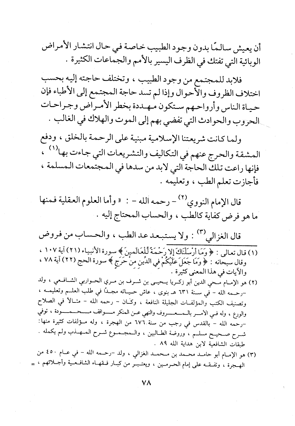 قال الإمام النووي (¬2) -رحمه الله- "وأما العلوم العقلية فمنها ما هو فرض كفاية كالطب، والحساب المحتاج إليه.