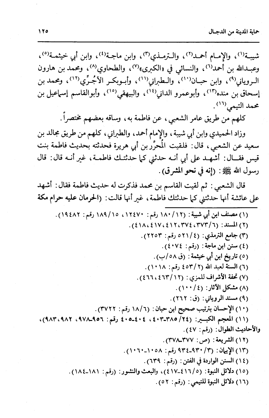 وزاد الحميدي وابن أبي شيبة، والإمام أحمد، والطبراني، كلهم من طريق مجالد بن سعيد عن الشعبي، قال: فلقيت المحرر بن أبي هريرة فحدثته بحديث فاطمة بنت قيس فقال: أشهد على أبي أنه حدثني كما حدثتك فاطمة، غير أنه قال: قال رسول الله صلى الله عليه وسلم (إنه في نحو المشرق).