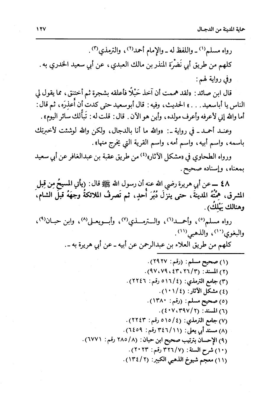 رواه مسلم (5)، وأحمد (6)، والترمذي (7)، وأبو يعلى (8)، وابن حبان (9)، والبغوي (10)، والذهبي (11).