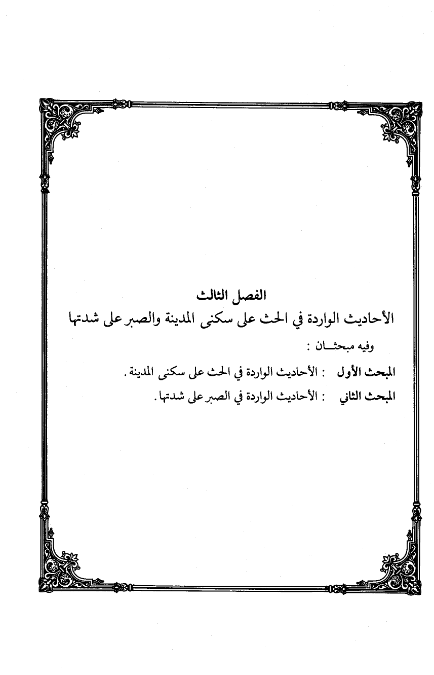 الفصل الثالث الأحاديث الواردة في الحث على سكنى المدينة والصبر على شدتها
