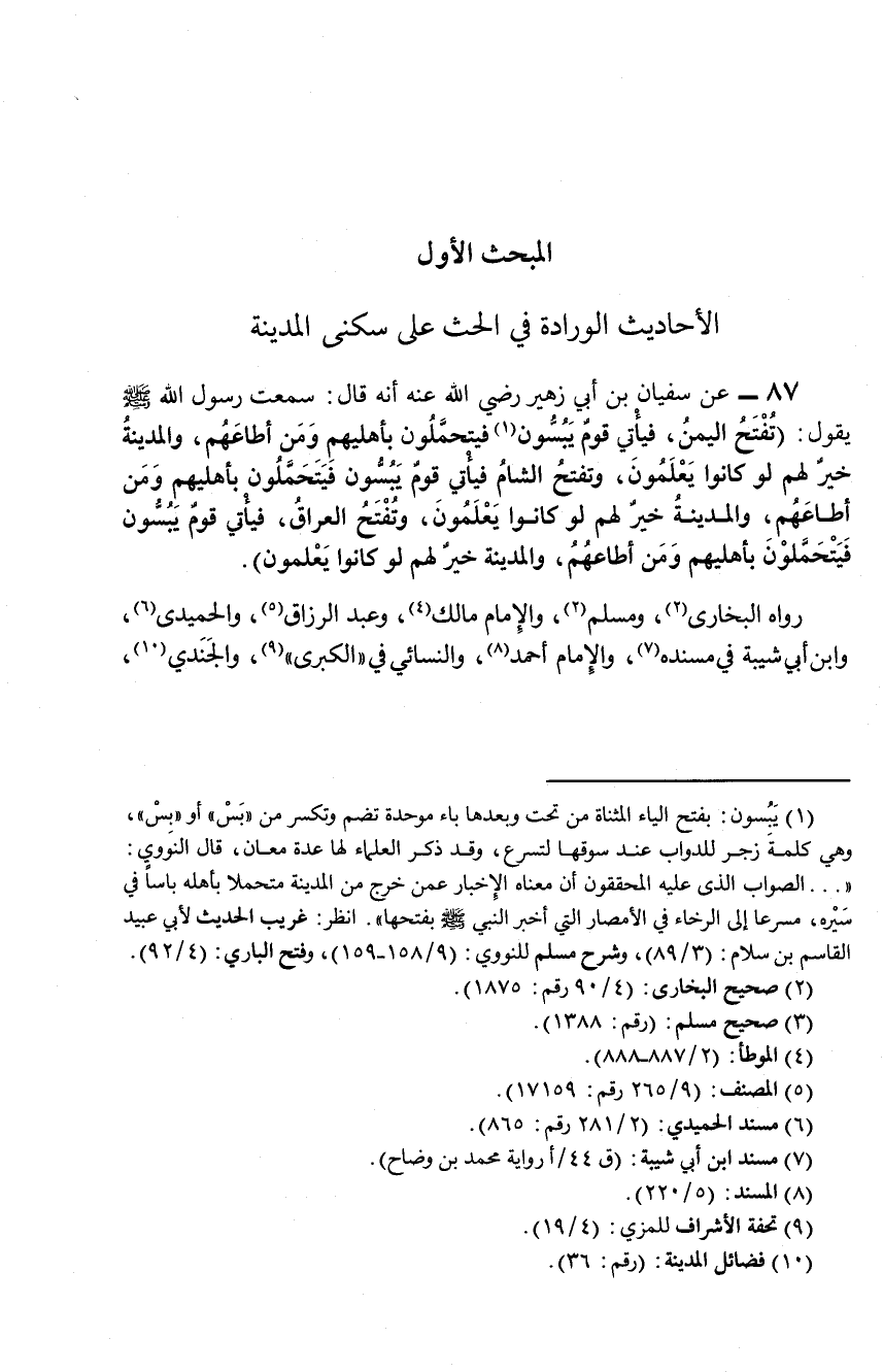 المبحث الأول الأحاديث الواردة في الحث على سكنى المدينة