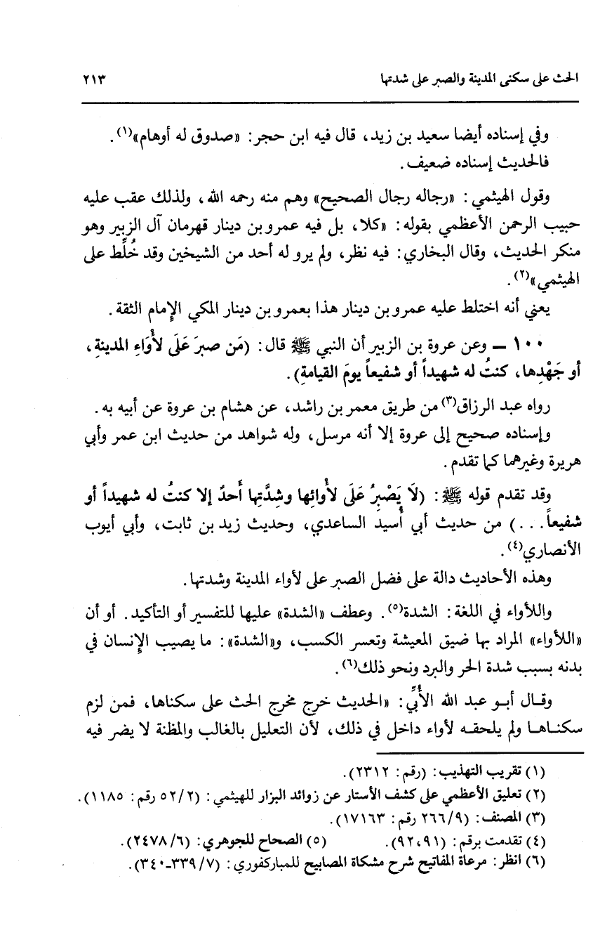 وقد تقدم قوله صلى الله عليه وسلم: (لا يصبر على لاوائها وشدتها أحد الا كنت له شهيدا أو شفيعا .. ) من حديث أبي أسيد الساعدي، وحديث زيد بن ثابت، وأبي أيوب الأنصاري. (4).