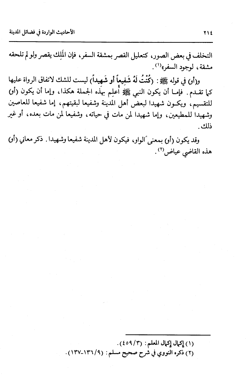 وقد يكون (أو) بمعنى الواو، فيكون لأهل المدينة شفيعا وشهيدا، ذكر معاني (أو) هذه القاضي عياض (2).