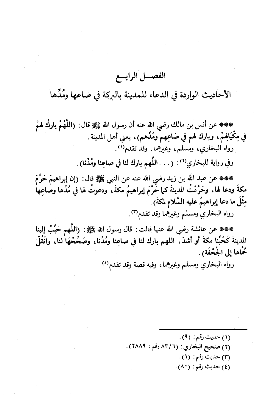 الفصل الرابع الأحاديث الواردة في الدعاء للمدينة بالبركة في صاعهاومدها