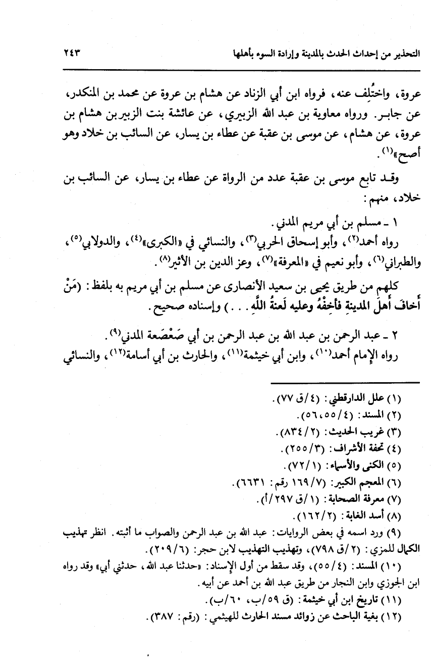 2 - عبد الرحمن بن عبد الله بن عبدالرحمن بن أبي صعصعة المدني (9).