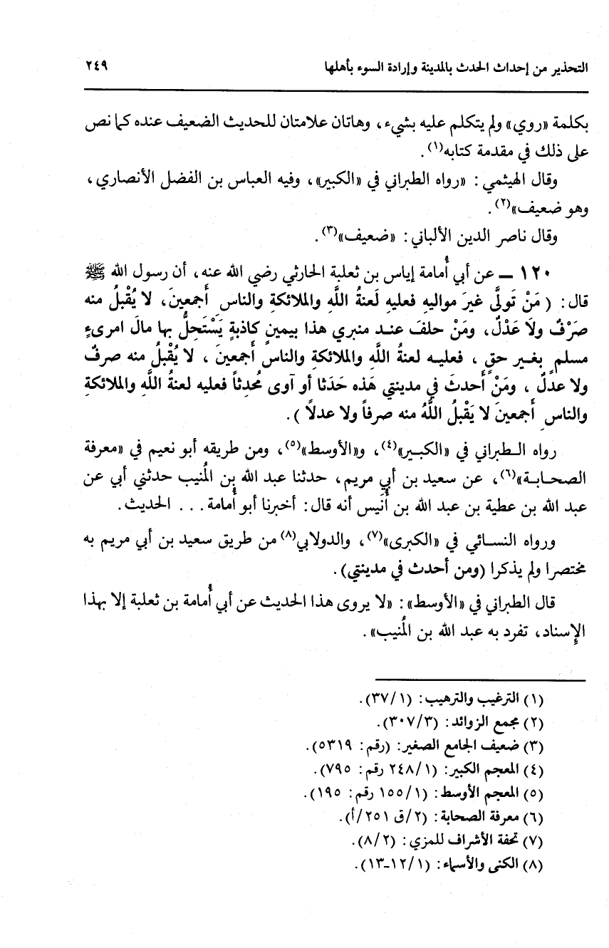 ورواه النسائي في ((الكبرى)) (7)، والدولابي (8) من طريق سعيد بن أبي مريم به مختصرا ولم يذكرا (ومن أحدث في مدينتي).