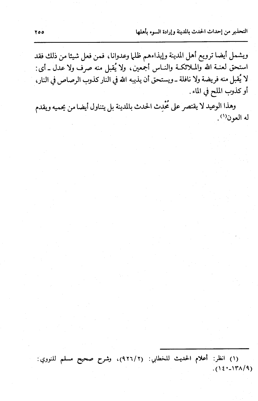 وهذا الوعيد لا يقتصر على محدث الحدث بالمدينة بل يتناول أيضاً من يحميه ويقدم له العون (1).