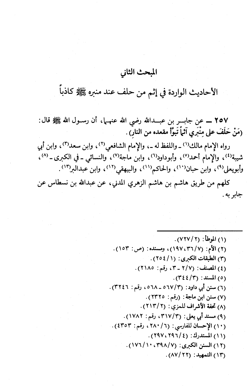 المبحث الثاني الأحاديث الواردة في إثم من حلف عند منبره صلى الله عليه وسلم كاذباً