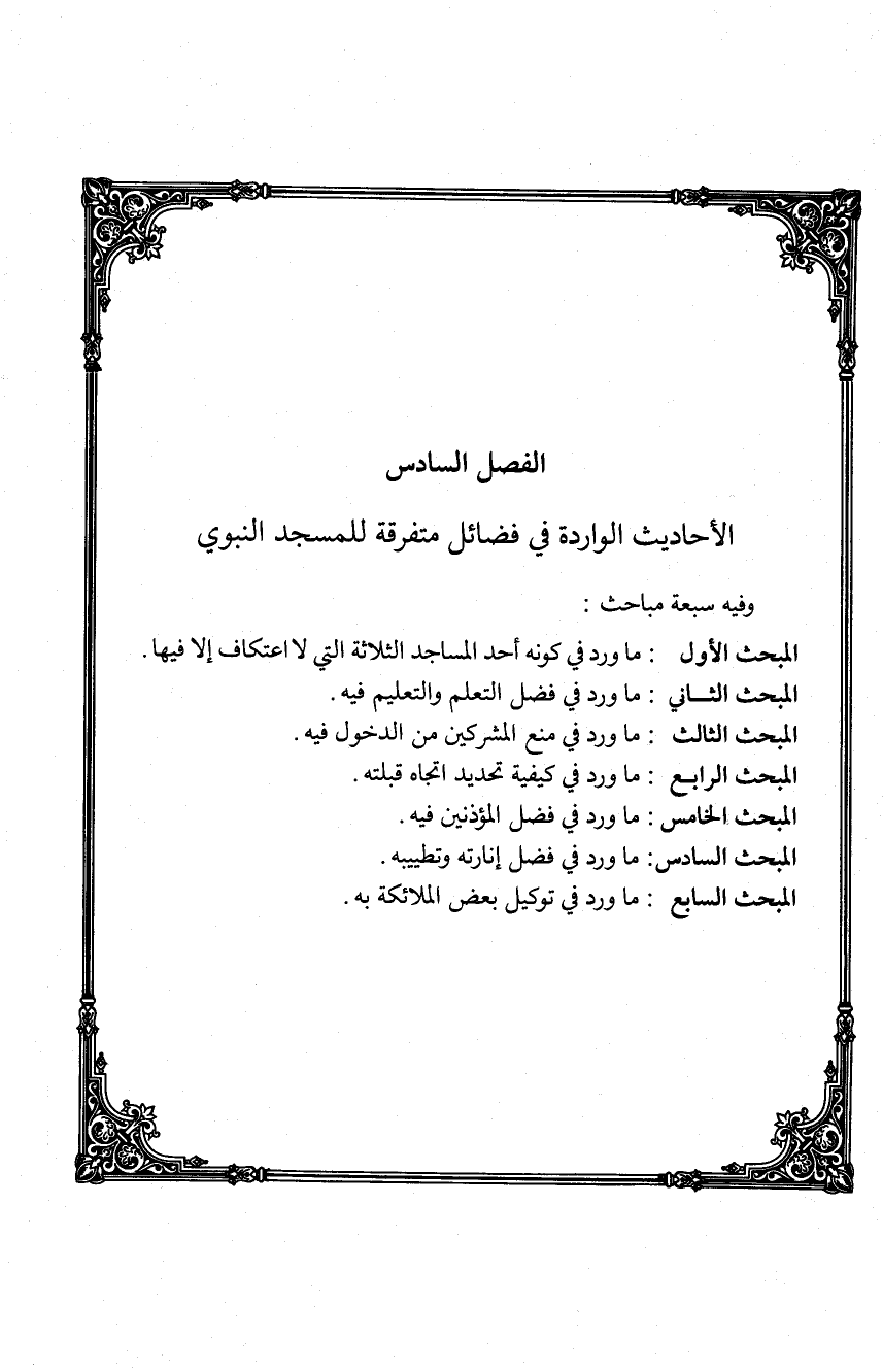 الفصل السادس الأحاديث الواردة في فضائل متفرقة للمسجد النبوي