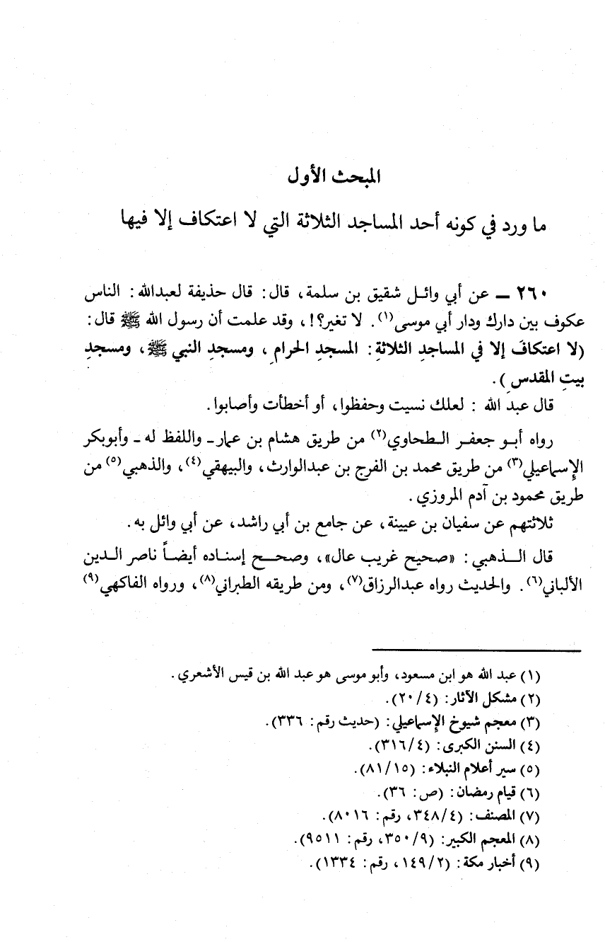 المبحث الأول ما ورد في كونه أحد المساجد الثلاثة التي لا اعتكاف إلا فيها.