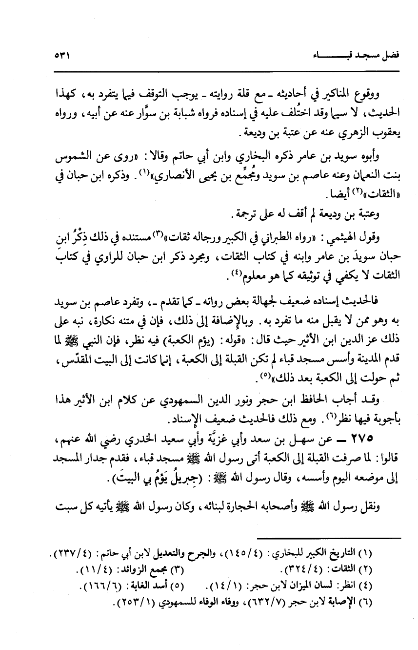 (6) الإصابة لابن حجر (632/ 7)، ووفاء الوفاء للسمهودي (253/ 1)