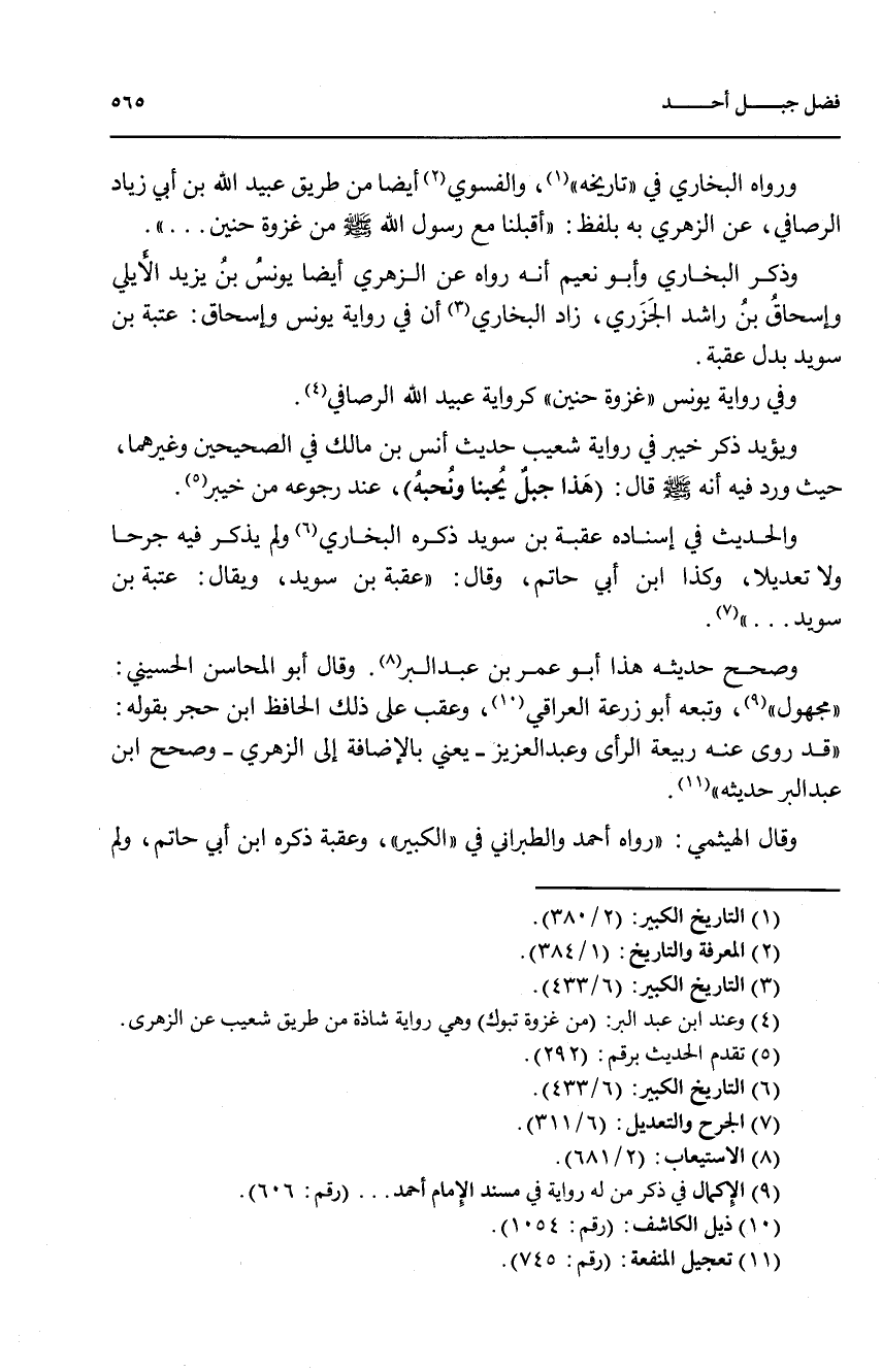 ويؤيد ذكر خيبر في رواية شعيب حديث أنس بن مالك في الصحيحين وغيرهما، حيث ورد فيه أنه صلى الله عليه وسلم قال: (هذا جبل يحبنا ونحبه)، عند رجوعه من خيبر (5).