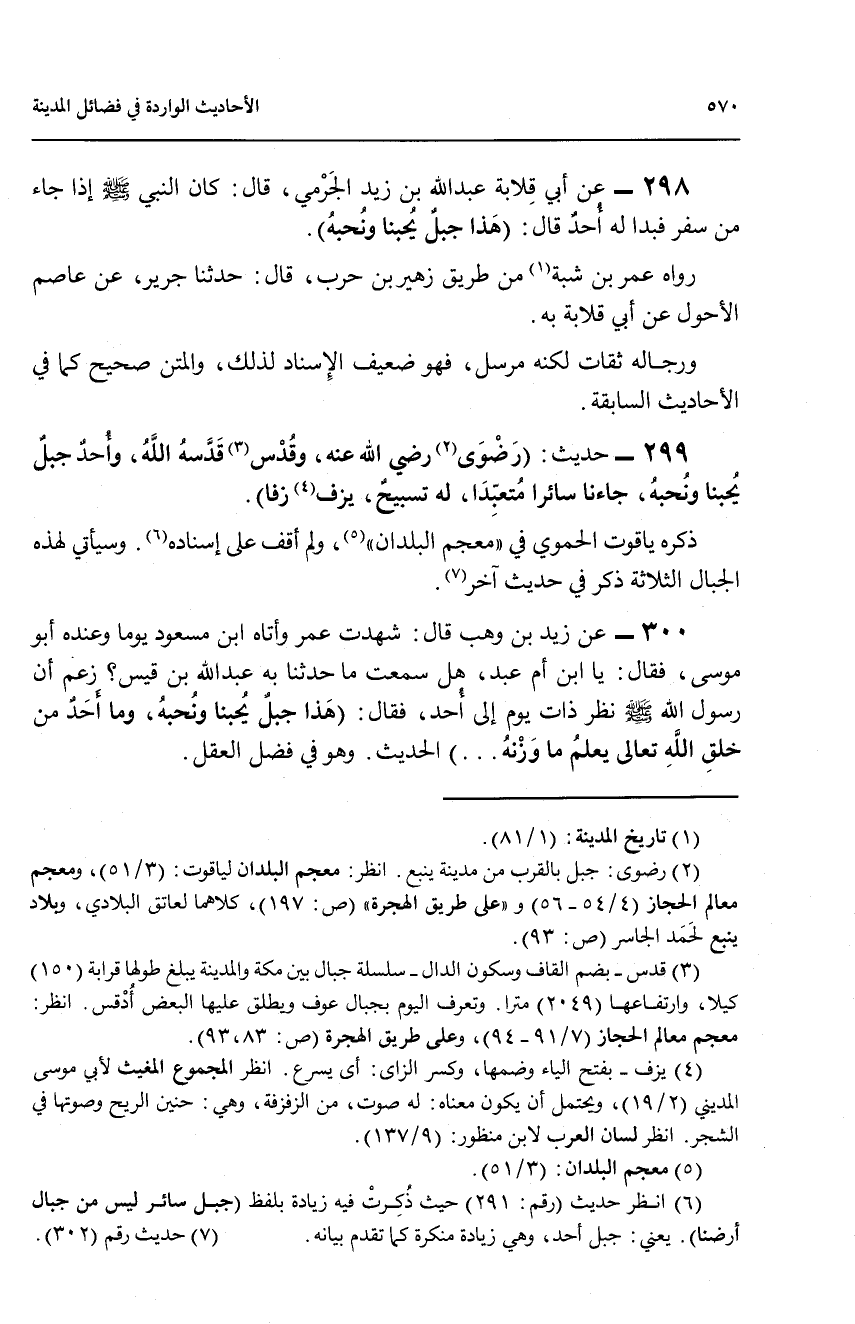 (6) انظر حديث (رقم: 291) حيث ذكرت فيه زيادة بلفظ (جبل سائر ليس من جبال ارضنا). يعني جبل أحد، وهي زيادة منكرة كما تقدم بيانه.
