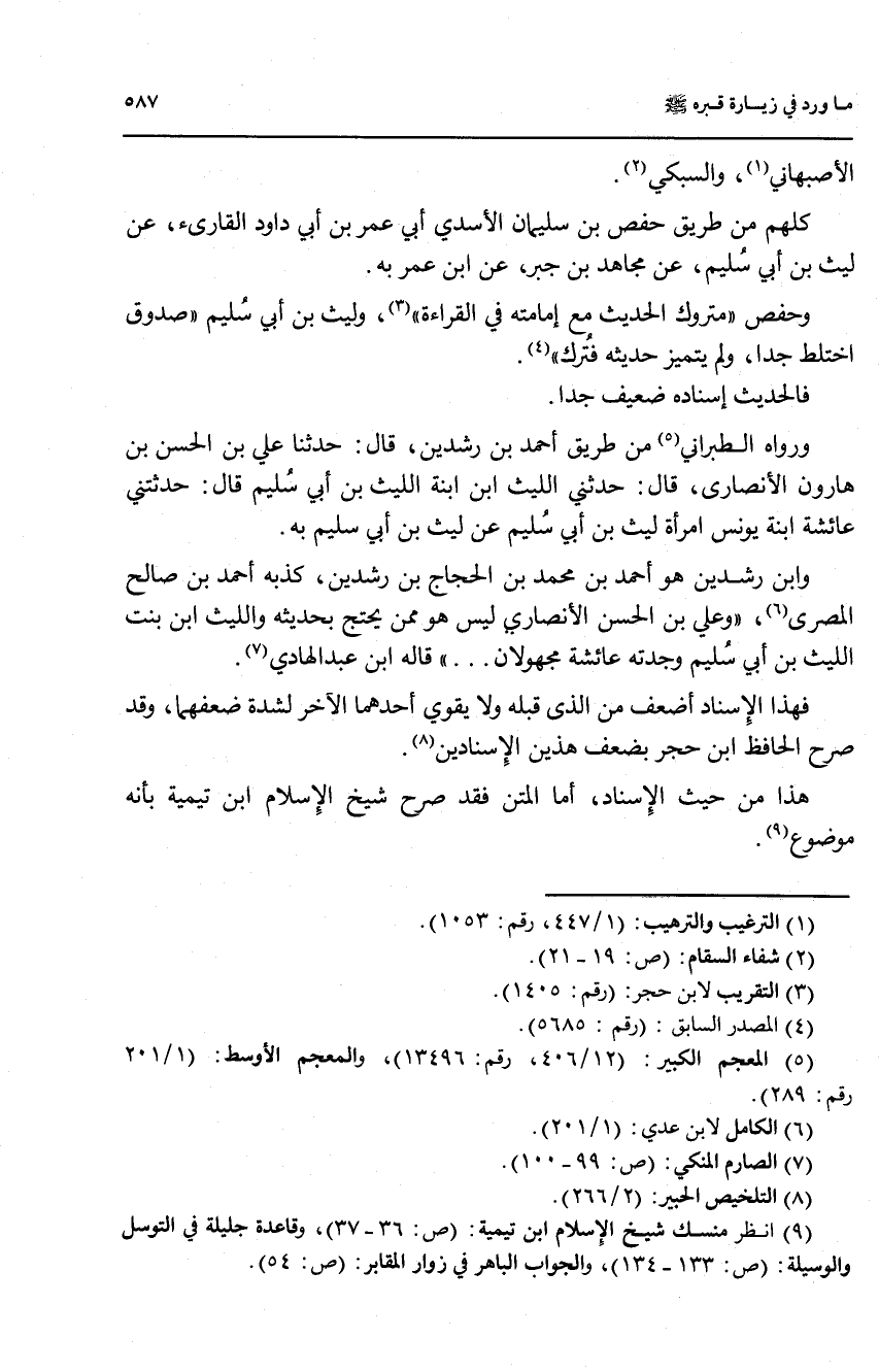 (9) انظر منسك شيخ الإسلام ابن تيمية: (ص: 36 - 37)، وقاعدة جليلة في التوسل والوسيلة: (ص: 133 - 134)، والجواب الباهر في زوار المقابر: (ص: 54)