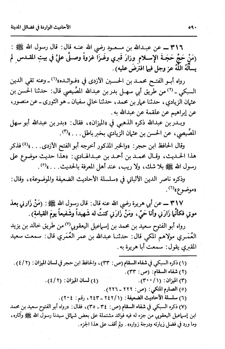 (1) ذكره السبكي في شفاء السقام (ص: 33)، والحافظ ابن حجر في لسان الميزان: (4/ 2)